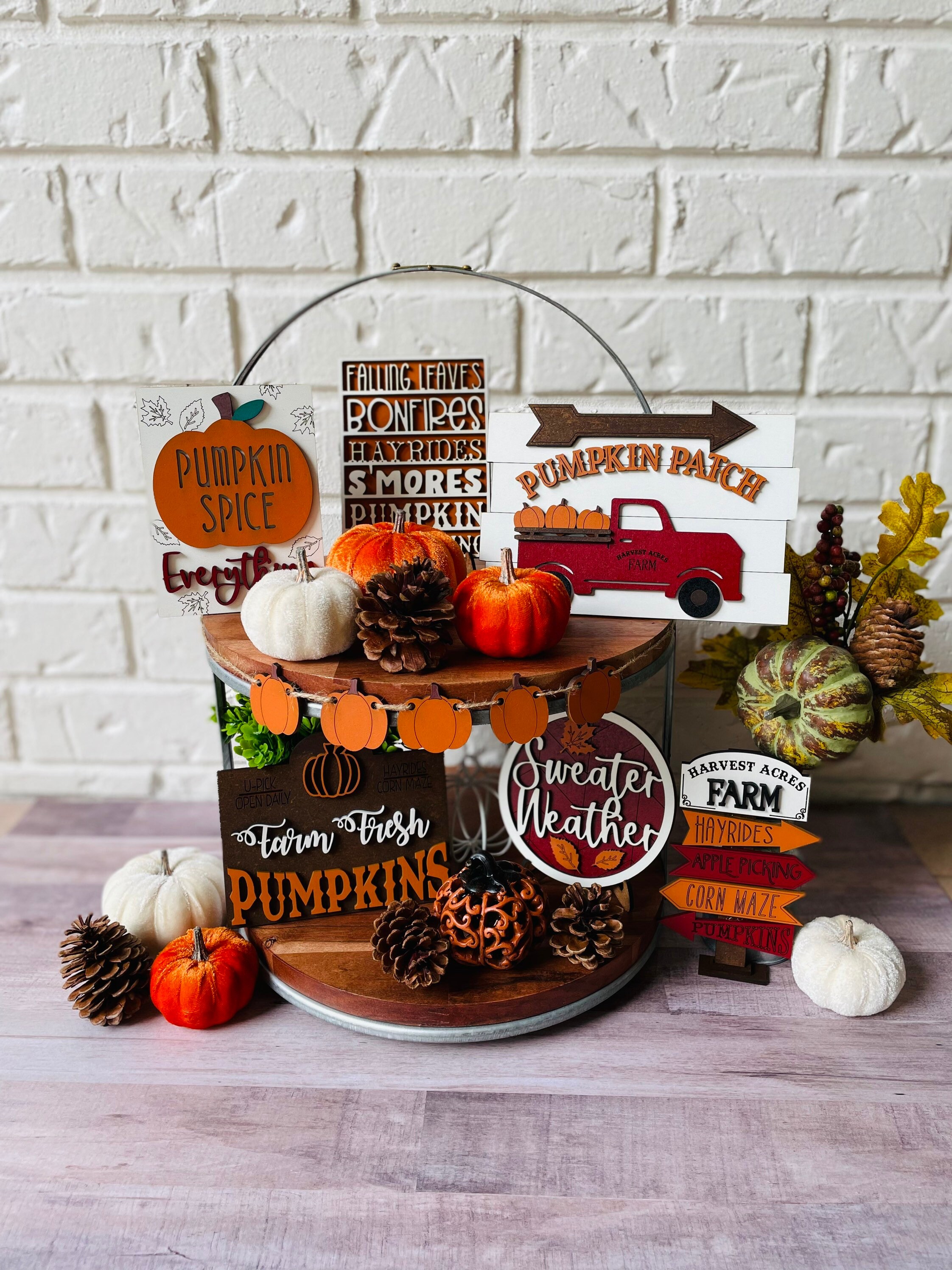 A single pumpkin is all it takes to make your space dressed for the season, and this pumpkin-themed tiered tray beautifully turns even the most basic kitchen corner into a seasonal moment.